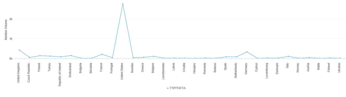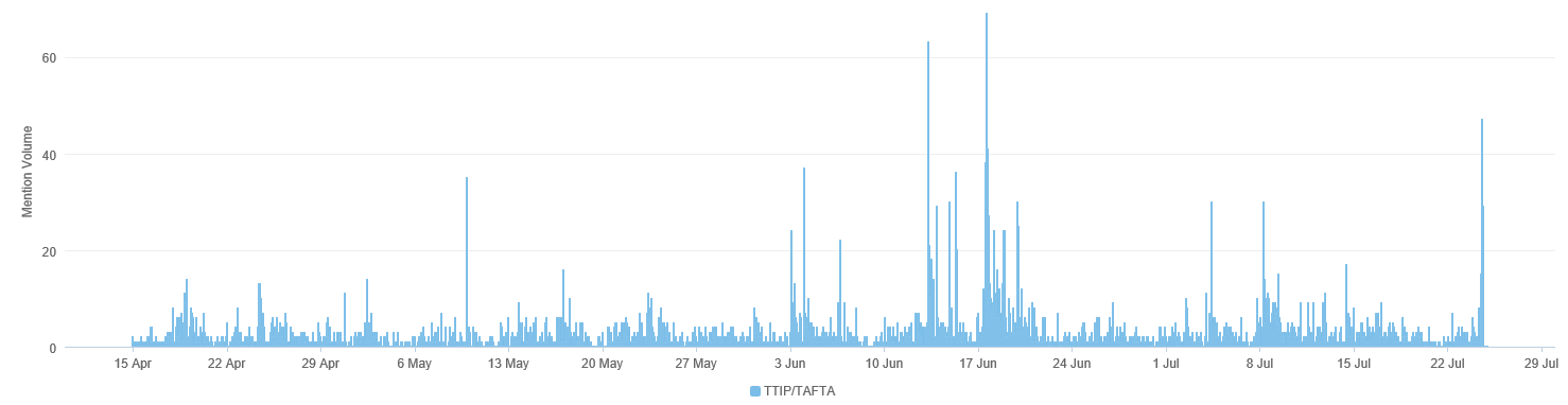 Over view: 5,505 mentions of TTIP/TAFTA in the last 100 days – too large of number for business and institutions to ignore. In short you need to join the conversation if you have something to say about it ASAP (indecision is a decision).