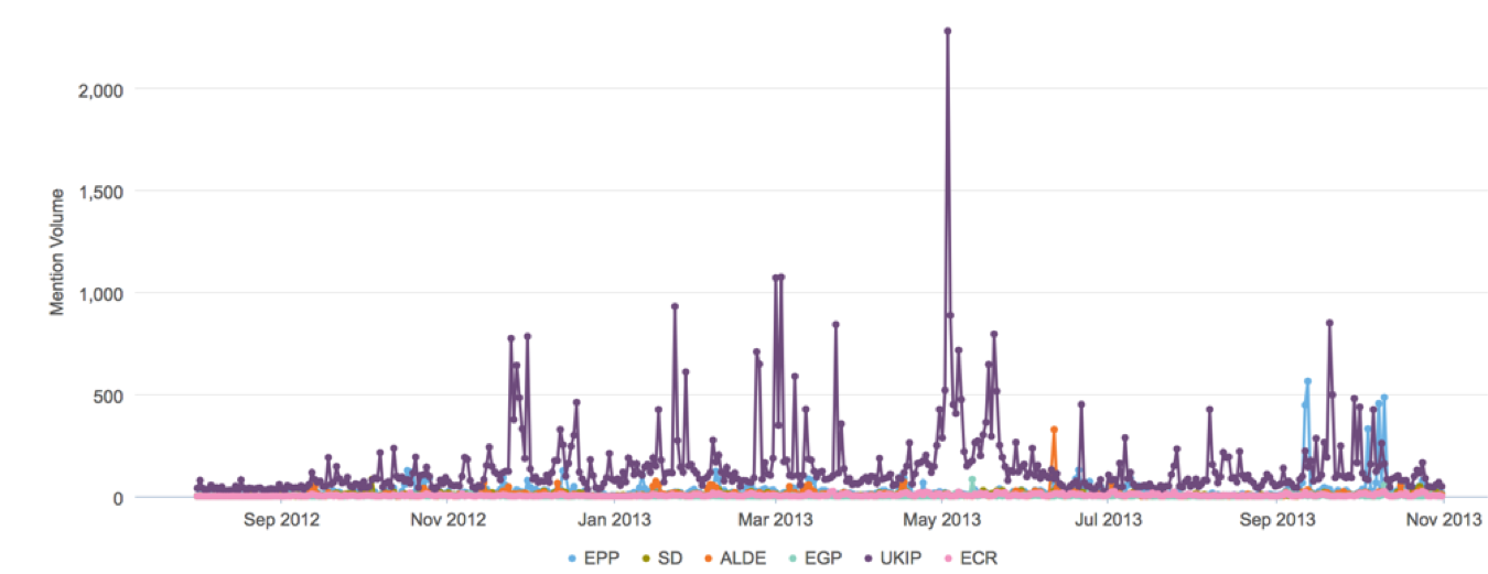 In politics, getting people mad often drives engagement. This sometimes drives voting rates to the parties that many deem unreasonable (Vlaams Belang, Front National, etc). For example, Mr. Farage’s Euro skeptic party, UKIP, has utterly dominated communications compared to the other European Parliament political groups. This isn’t a good thing if you note that the winners usually have more volume of mentions. Surely, Europe is stronger and more competitive together than it is fragmented. Nonetheless, if mainstream parties can’t even figure out how to communicate and run a proper campaign, why should they be trusted with leadership?