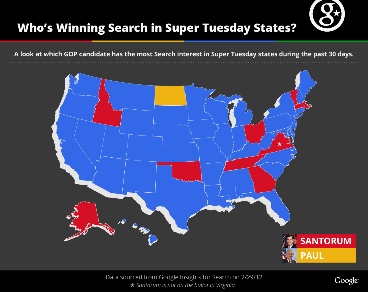 Cool Map from the Google Election Centre. I suggest you check it out http://www.google.com/elections/ed/us/trends